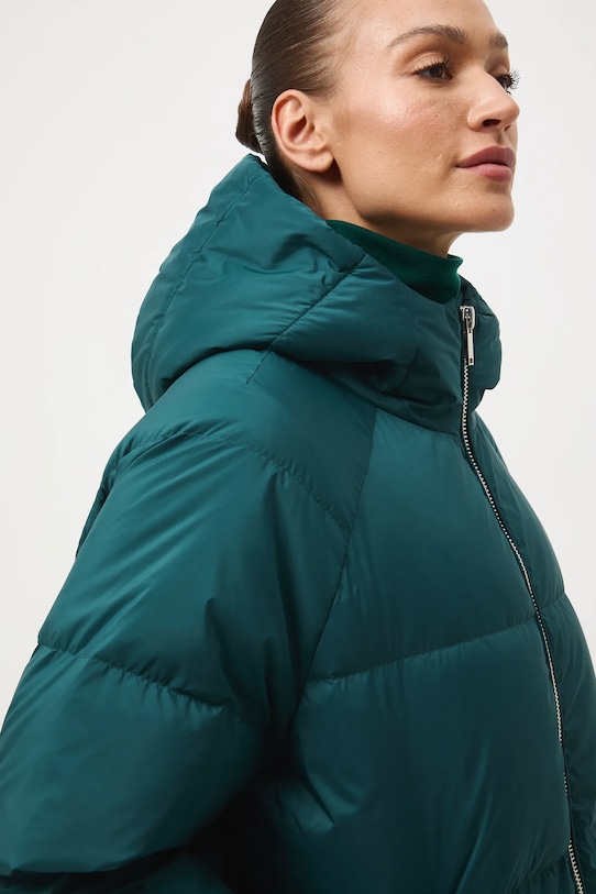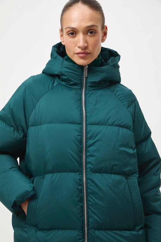 Пуховик из коллекции Medicine. Эта утеплённая модель выполнена из стёганого материала. - Большой размер. - Застежка-молния. - Поднятый воротник. - Модель с капюшоном. - Два боковых накладных кармана. - Утепленная модель с подкладкой. - Стеганая модель. - Наполнитель - натуральный пух и перья. - Длина рукава (от капюшона): 75 см. - Длина: 78 см. - Ширина груди: 68 см. - Размеры указаны для размера: S.