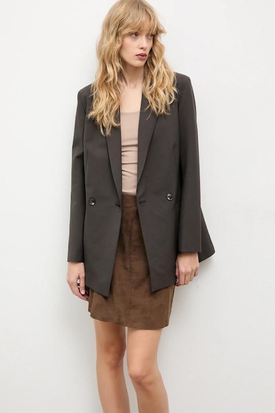 Эта куртка из коллекции Answear.Lab выполнена из гладкой ткани. Полиэстер обеспечивает повышенную устойчивость к сминанию. - Простой дизайн, не стесняющий движений. - Длинный рукав. - Классические лацканы. - Модель на подкладке. - Двубортный пиджак с застежкой на пуговицы. - Два накладных кармана спереди. - Длина рукава: 60 см. - Длина: 75 см. - Ширина под мышками: 47 см. - Ширина плеч: 40 см. - Размеры указаны для размера: S.