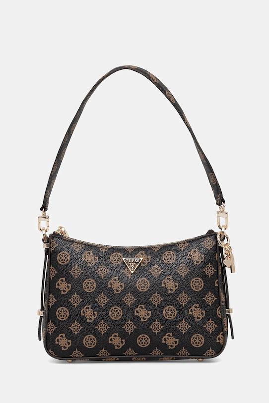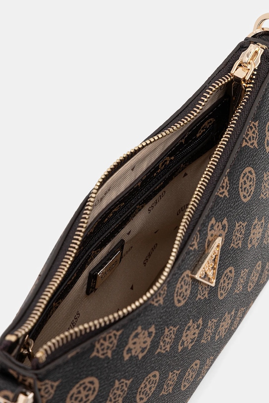 Сумка из коллекции Guess. Модель с застёжкой-крючком, выполнена из экокожи. - Входящий в комплект тканевый чехол защищает изделие от пыли. - Продукция Guess Eco разработана таким образом, чтобы производить как можно меньше отходов без ущерба для качества и долговечности. - Застежка-молния. - Модель на подкладке. - Не подходит для формата А4. - Удобная съемная ручка. - Внутренний карман на молнии. - Модель оснащена металлическими ножками, которые защищают дно сумки. - Длина ручки: 54 см. - Глубина: 6 см. - Высота: 16 см. - Ширина у основания: 24 см.