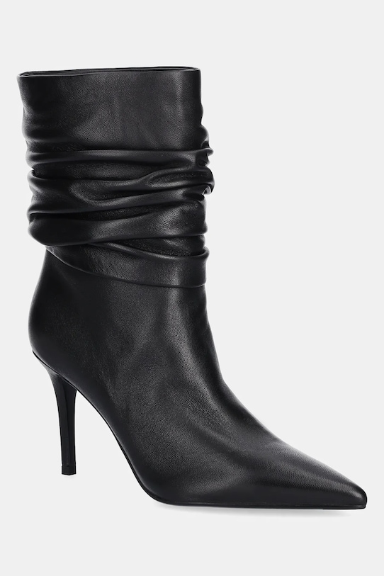 Ботильоны из коллекции Answear.LAB, изготовленные из натуральной кожи. Верх из непористой ткани легко чистится влажной тканью. - Заостренный, жесткий нос. - Усиленный задник обеспечивает отличную поддержку лодыжки и пятки. - Модель на шпильке. - Кожаная стелька комфортна для стопы и предотвращает натирание, потертости и появление неприятного запаха. - Высота каблука: 8,5 см. - Длина вставки: 23 см. - Размеры указаны для размера: 37.