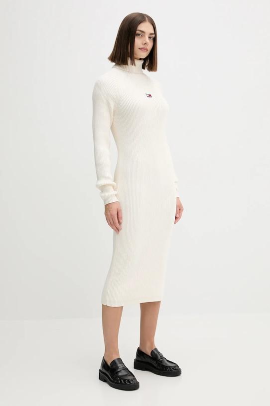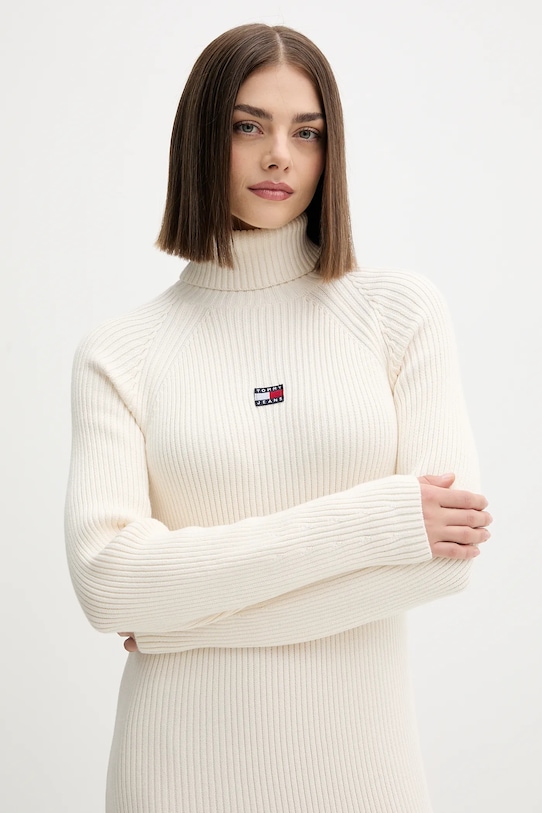 Платье из коллекции Tommy Jeans из хлопчатобумажного трикотажа. - Эта модель содержит регенерированные хлопковые волокна. Новые волокна и пряжа производятся из старых текстильных отходов и используются для производства новой одежды. - Модель длины миди. - Приталенный крой, подчеркивающий силуэт. - Длинные, прилегающие рукава. - Модель с высоким воротом. - Длина рукава (от воротника): 73 см. - Длина: 120 см. - Ширина под мышками: 47 см. - Размеры указаны для размера: S.