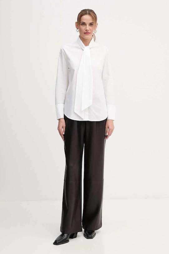 Эти брюки из коллекции OUI изготовлены из искусственной кожи. Они изготовлены из исключительно комфортного и высококачественного материала. - Брюки свободные в области бедер и ягодиц. - Прямая нога полной длины. - Модель с высокой талией, застежкой на пуговицы и молнию. - Два боковых накладных кармана. - Два накладных кармана на ягодицах. - Декоративные закладки. - Ширина талии: 38 см. - Ширина бедер: 50,5 см. - Высота талии: 31,5 см. - Ширина штанины внизу: 28,5 см. - Ширина штанины: 32,5 см. - Длина внешней части штанины: 111 см. - Размеры указаны для размера: 36.