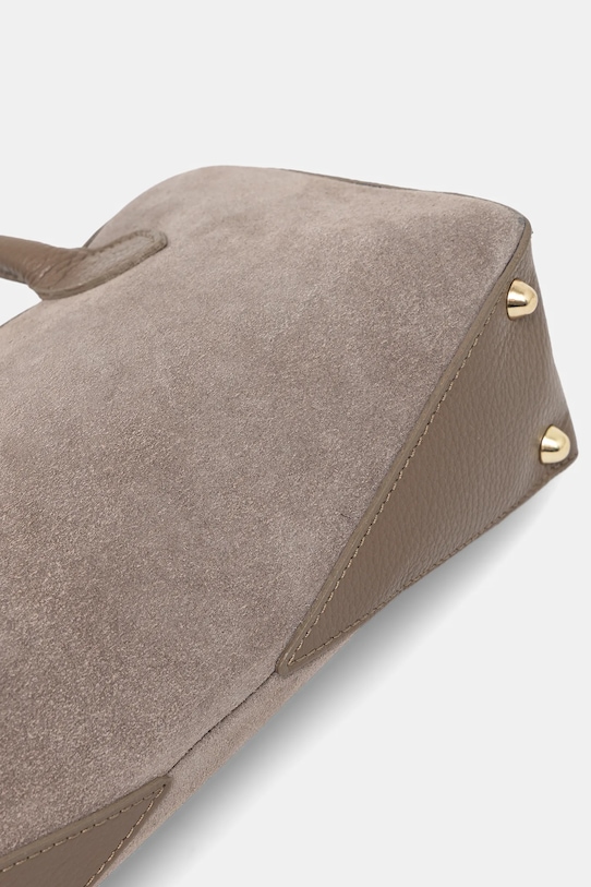 Небольшая сумочка из коллекции Answear.Lab. Застёгивается на молнию, выполнена из комбинации замши и натуральной кожи. - Застежка-молния. - Модель на подкладке. - Не подходит для формата А4. - Внутренний накладной карман позволяет хранить ключи или другие мелкие предметы. - Модель оснащена металлическими ножками, которые защищают дно сумки. - Длинные ручки для удобной переноски в руке или на плече. - Входящий в комплект тканевый чехол защищает изделие от пыли. - Длина ручки: 64 см. - Глубина: 9 см. - Высота: 17,5 см. - Ширина у основания: 33,5 см.
