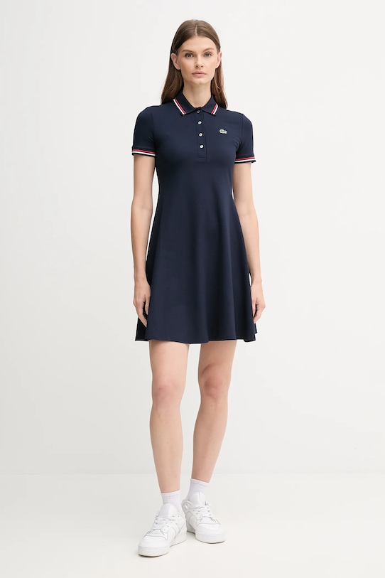 Это платье из коллекции Lacoste выполнено из гладкого трикотажа. Высокоэластичный материал обеспечивает полную свободу движений. - Расклешенный крой. - Короткий рукав. - Модель с воротником. - Застежка на короткие пуговицы обеспечивает эффективную вентиляцию и легкость надевания и снимания. - Тонкий, эластичный трикотаж. - Длина: 84 см. - Ширина под мышками: 41 см. - Ширина талии: 35 см. - Размеры указаны для размера: 36.