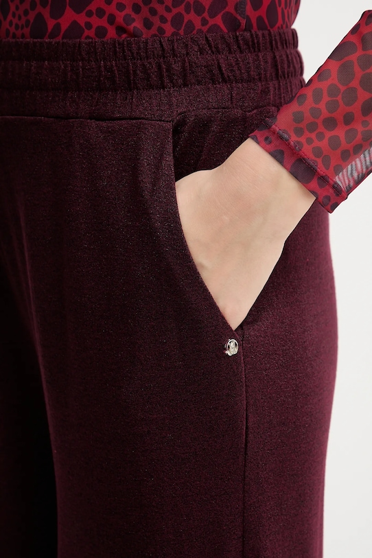 Эти брюки из коллекции Marc Aurel изготовлены из тонкого эластичного трикотажа. Полиэстер обеспечивает повышенную устойчивость к сминанию. - Высокая талия с эластичным поясом. - Широкие штанины. - Материал с металлической нитью. - Два боковых накладных кармана. - Ширина талии: 35 см. - Ширина бедер: 49 см. - Высота талии: 36 см. - Ширина штанины: 32 см. - Ширина штанины внизу: 32 см. - Длина по внутреннему шву: 75 см. - Размеры указаны для размера: 36.