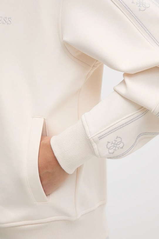 Эта толстовка Guess выполнена из трикотажного полотна с аппликацией. Модель имеет мягкую подкладку для мягкости и дополнительного тепла. - Свободный крой, обеспечивающий полную свободу движений. - Крой рукава со спущенной линией плеча не ограничивает подвижность. - Застежка-молния. - Рукава и низ изделия отделаны удобными эластичными манжетами. - Два боковых накладных кармана. - Длина рукава: 58 см. - Длина: 58 см. - Ширина под мышками: 55 см. - Размеры указаны для размера: S.