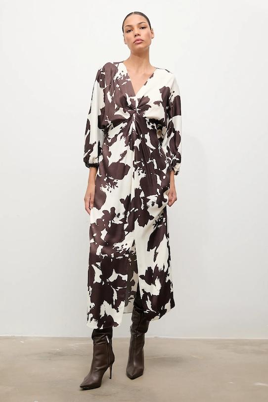 Это платье из коллекции Answear.LAB выполнено из тонкой, неэластичной ткани. Модель выполнена из исключительно комфортного материала с высоким содержанием вискозы. - Расклешенный крой. - Острый вырез. - Короткий рукав. - У него есть прорези. - Два накладных кармана спереди. - Длина: 130 см. - Размеры указаны для размера: S. - Ширина бедер: 42 см. - Ширина талии: 35 см.