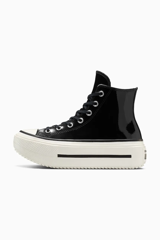 Кеды из коллекции Converse. Изготовлены из лакированной кожи. - Жесткий верх обеспечивает устойчивость. - Модель с текстильной подкладкой. - Классическая шнуровка позволяет индивидуально подогнать обувь по ноге. - Платформенная модель. - Декоративные детали. - Уютный салон. - Резиновая подошва прочная и устойчивая к повреждениям. - Круглый, прорезиненный носок.