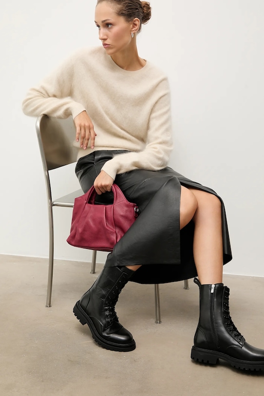 Рабочие ботинки из коллекции Answear.Lab из натуральной кожи. Верх из непористой ткани легко чистится влажной тканью. - Модель на шнуровке с застежкой-молнией сбоку. - Классическая шнуровка позволяет индивидуально подогнать посадку. - Петля сзади облегчает надевание и снятие обуви. - Круглый, жёсткий носок. - Жесткий задник стабилизирует пятку и удерживает ногу в обуви, не давая ей выскальзывать во время движения. - Уютный салон. - Резиновая подошва прочная и устойчивая к повреждениям. - Платформенная модель. - Высота платформы: 4 см. - Длина вставки: 23 см. - Размеры указаны для размера: 37.
