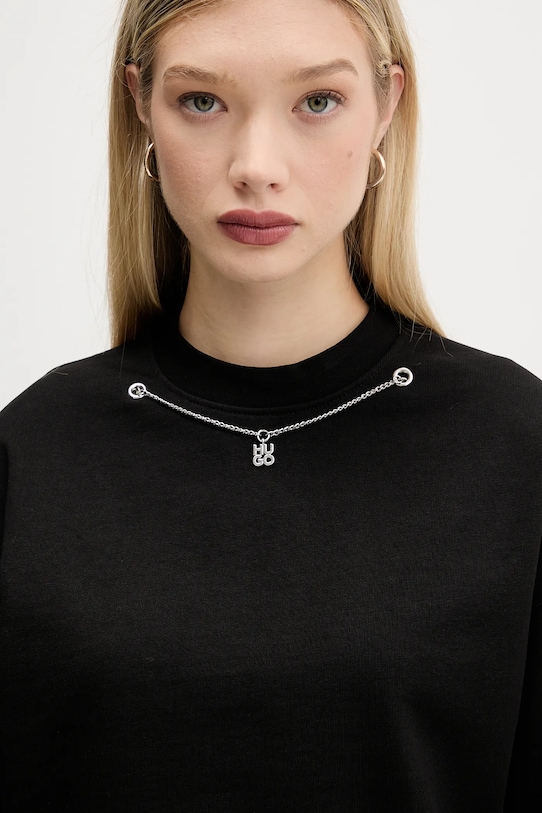 Эта толстовка из коллекции HUGO выполнена из тонкой, эластичной ткани. Модель выполнена из исключительно комфортного, дышащего материала с высоким содержанием хлопка. - Изделия линейки WE ACT не менее чем на 60% изготовлены из материалов, полученных более экологичным способом. - Свободный крой, обеспечивающий полную свободу движений. - Круглый ребристый вырез. - Крой рукава со спущенной линией плеча не ограничивает подвижность. - Длинные рукава с удобными эластичными манжетами. - Модель со съемной декоративной цепочкой. - Длина рукава (от горловины): 77 см. - Длина: 48 см. - Ширина под мышками: 58 см. - Размеры указаны для размера: S.