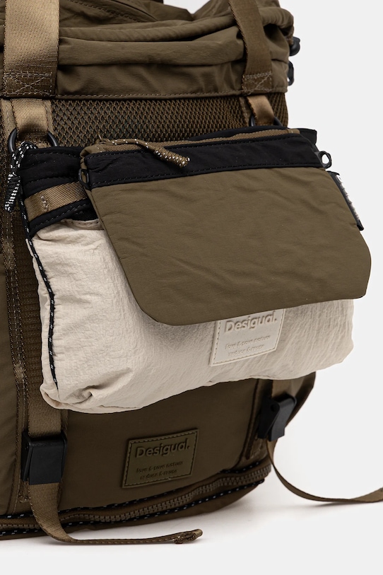 Рюкзак из коллекции Desigual. Изготовлен из текстильного материала. - Застежка-молния. - Внутренний карман на молнии. - Боковые карманы для бутылок. - Прикрепляемый передний карман с застежкой-молнией и дополнительным передним карманом на молнии. - Высота регулируется с помощью ползунка. - Короткие ручки. - Съемный регулируемый ремешок. - Вмещает формат А4. - Глубина: 14 см. - Высота: 36 см. - Ширина у основания: 30 см. - Длина ручки: 58 см. - Длина прикрепляемого ремня: 80 см/114 см.