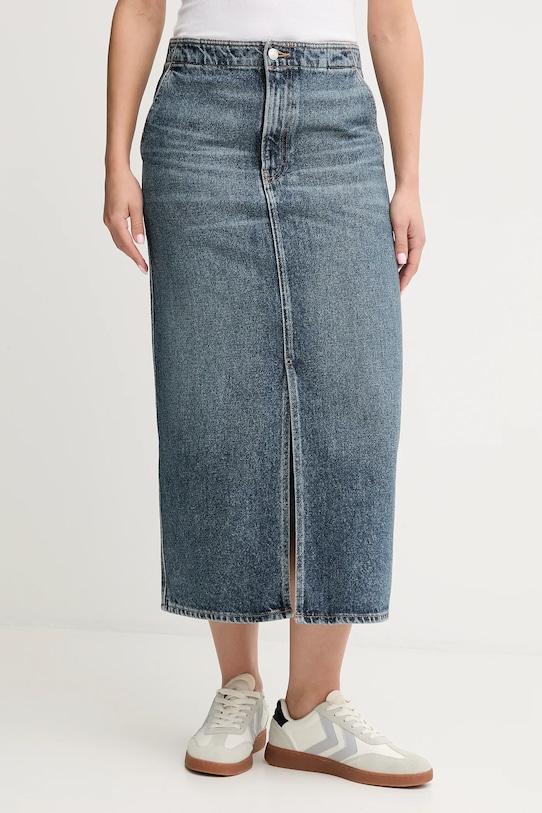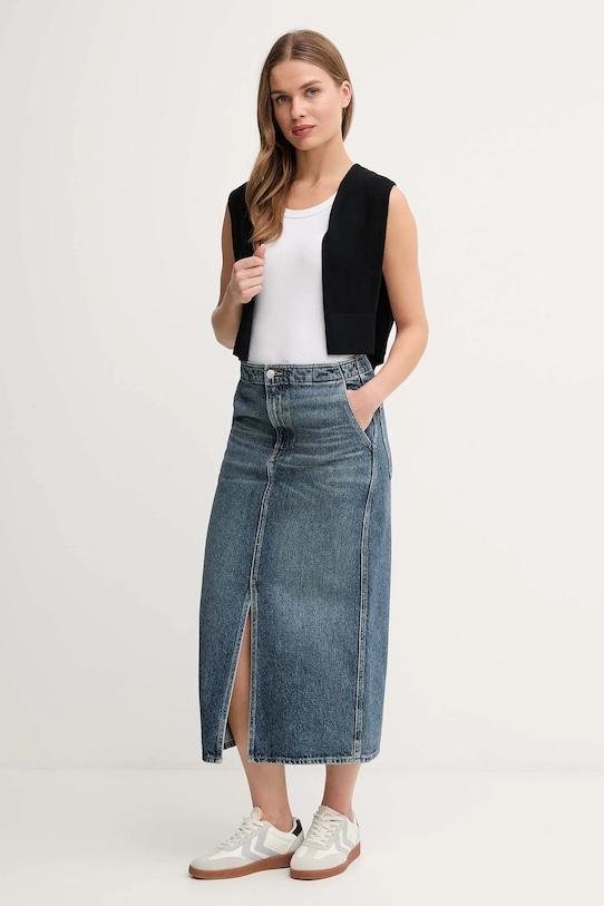Эта юбка Calvin Klein Jeans выполнена из потертого денима. Она изготовлена из исключительно комфортного, дышащего хлопка. - Приталенный крой, подчеркивающий силуэт. - Модель без подкладки. - Высокая талия обеспечивает комфорт во время занятий спортом и позволяет визуально стройнить фигуру. - Застежка на пуговицы и молнию. - Впечатляющий крой. - Два боковых накладных кармана. - Два накладных кармана на ягодицах. - Ширина талии: 38 см. - Длина: 88 см. - Размеры указаны для размера: 27.