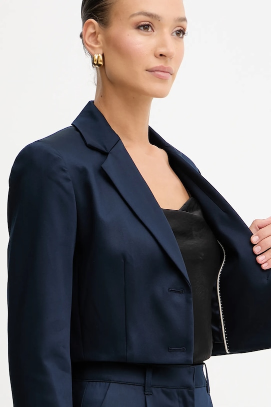 Этот блейзер из коллекции Guess выполнен из гладкой ткани. Эта модель выполнена из мягкого и приятного на ощупь материала. - Содержит переработанный пластик. - Простой дизайн, не стесняющий движений. - Модель выполнена из материала атласного переплетения. - Модель на подкладке. - Классические лацканы. - Однобортный пиджак с застежкой на пуговицы. - Тонкая, неэластичная ткань. - В плечах вшиты подкладки. - Длина рукава: 60 см. - Длина: 43 см. - Ширина под мышками: 44 см. - Ширина плеч: 37 см. - Размеры указаны для размера: S.