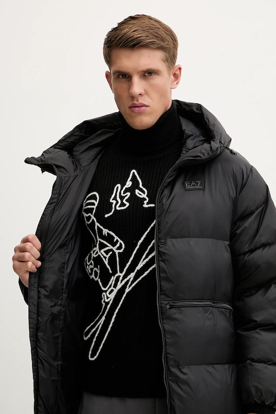 Эта куртка из коллекции EA7 Emporio Armani. Эта утеплённая модель выполнена из стёганой ткани с синтетическим утеплителем для дополнительного комфорта в прохладную погоду. - Свободный крой, обеспечивающий полную свободу движений. - Застежка-молния. - Капюшон с завязками и стопорами. - Рукава отделаны удобными эластичными манжетами. - Два прорезных боковых кармана на молнии. - Внутренний карман на молнии. - Длина рукава: 60 см. - Длина: 108 см. - Ширина под мышками: 70 см. - Размеры указаны для размера: M.