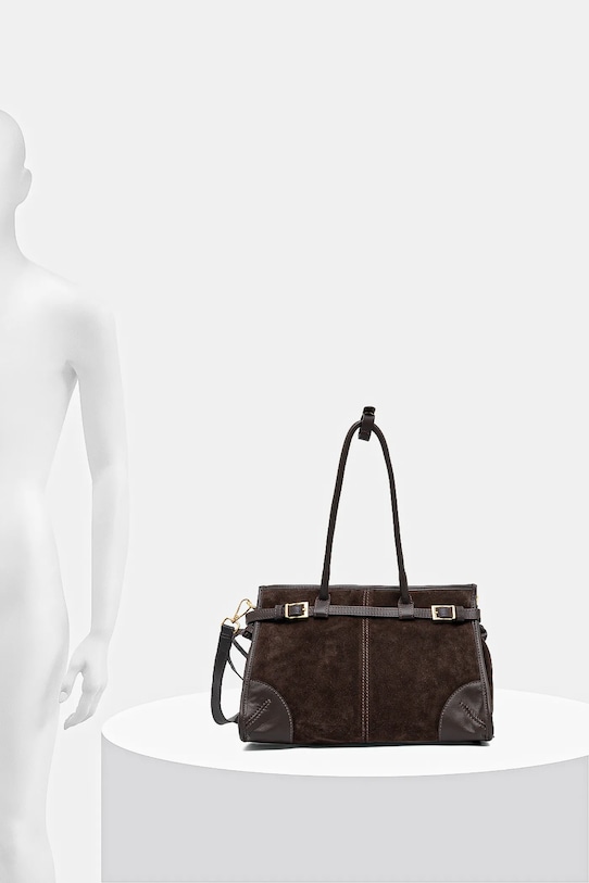 Сумка среднего размера из коллекции Answear.Lab. Модель на молнии, выполнена из комбинации натуральной кожи и замши. - Застежка-молния. - Не подходит для формата А4. - Имеет ручки и съемный регулируемый ремень. - Модель на подкладке. - Внутренний карман на молнии. - Входящий в комплект тканевый чехол защищает изделие от пыли. - Минимальная длина ремешка: 66 см. - Максимальная длина ремня: 115 см. - Длина ручки: 50 см. - Глубина: 14 см. - Высота: 20 см. - Ширина у основания: 32 см.
