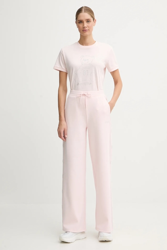 Эти спортивные брюки из коллекции Guess изготовлены из тонкой эластичной ткани. Полиэстер обеспечивает повышенную устойчивость к сминанию. - Содержит переработанный пластик. - Брюки свободные в области бедер и ягодиц. - Прямая нога полной длины. - Эластичный пояс и дополнительная регулировка ширины с помощью шнурков для предотвращения сползания во время движения. - Два боковых накладных кармана. - Модель со стразами. - Ширина талии: 35,5 см. - Ширина бедер: 52 см. - Высота талии: 32 см. - Ширина штанины внизу: 29,5 см. - Ширина штанины: 30 см. - Длина внешней части штанины: 110,5 см. - Размеры указаны для размера: S.