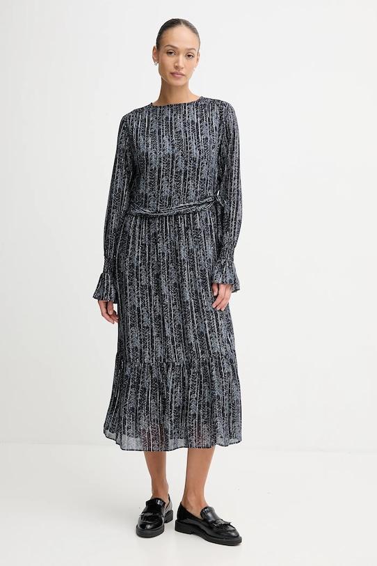 Это платье из коллекции Pepe Jeans выполнено из тонкой, неэластичной ткани. Эта модель выполнена из исключительно комфортного и дышащего материала, идеально подходящего для теплого времени года. - Расклешенный крой. - Классический круглый вырез. - Застегивается на пуговицы сзади. - Модель на подкладке. - Материал с металлической нитью. - Длина рукава: 70 см. - Длина: 130 см. - Ширина под мышками: 46 см. - Ширина талии: 42 см. - Размеры указаны для размера: S.