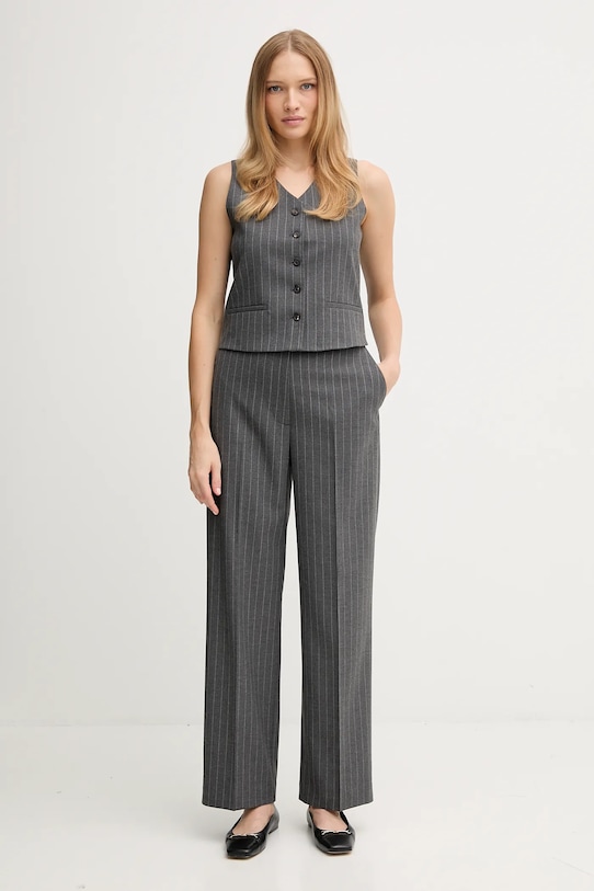 Эти брюки Tommy Hilfiger сшиты из тонкой, слегка эластичной ткани. Содержание полиэстера делает материал менее мнущимся. - Полиэстер, использованный при изготовлении этой модели, как минимум наполовину состоит из переработанного полиэстера. - Брюки свободные в области бедер и ягодиц. - Модель с высокой талией, застежкой на молнию, пуговицы и крючок. - Прямые, широкие штанины. - Штанина отутюживается в складку. - Два боковых накладных кармана. - Два кармана на пуговицах на ягодицах. - Ширина талии: 38 см. - Ширина бедер: 52 см. - Высота талии: 34 см. - Ширина штанины снизу: 25 см. - Ширина штанины: 32 см. - Длина внешней части штанины: 109 см. - Размеры указаны для размера: 36.