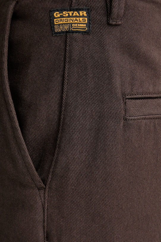 Брюки из коллекции G-Star из гладкой ткани, изготовленной из исключительно прочного хлопка. - Изделие содержит переработанные волокнистые материалы. - Этот продукт частично изготовлен из органического хлопка. - Модель с высокой талией, застежкой на пуговицы и молнию. - Два боковых накладных кармана. - Имитация карманов на ягодицах. - Ширина талии: 35 см. - Ширина бедер: 42 см. - Высота талии: 34 см. - Ширина штанины: 31 см. - Ширина штанины внизу: 27 см. - Длина по внутреннему шву: 79 см. - Размеры указаны для размера: 27/30.