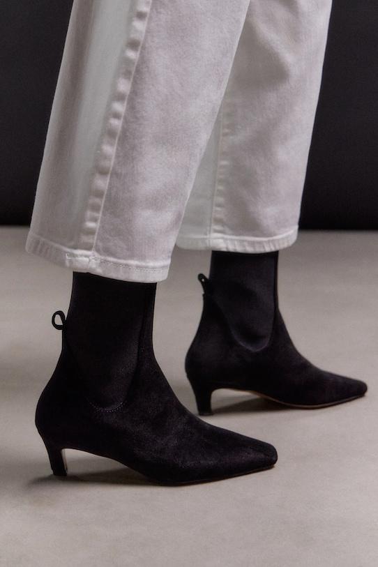 Ботинки челси из коллекции Answear.LAB, изготовленные из замши. Благодаря эластичной вставке, эти ботинки легко адаптируются к форме стопы. - Сужающийся, жесткий нос. - Жесткий задник стабилизирует пятку и удерживает ногу в обуви, не давая ей выскальзывать во время движения. - Резиновая подошва прочная и устойчивая к повреждениям. - Модель на шпильке. - Контурная стелька поддерживает свод стопы и обеспечивает длительный комфорт. - Модель с кожаной внутренней частью, которая удобна для стопы и предотвращает натирание, потертости и появление неприятного запаха. - Петля сзади облегчает надевание и снятие обуви. - Эластичная вставка обеспечивает индивидуальную посадку. - Высота каблука: 5,5 см. - Длина вставки: 23 см. - Размеры указаны для размера: 37.