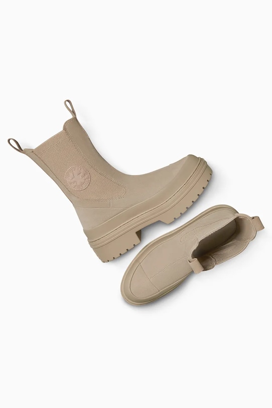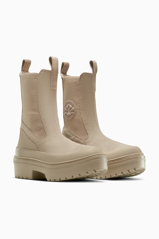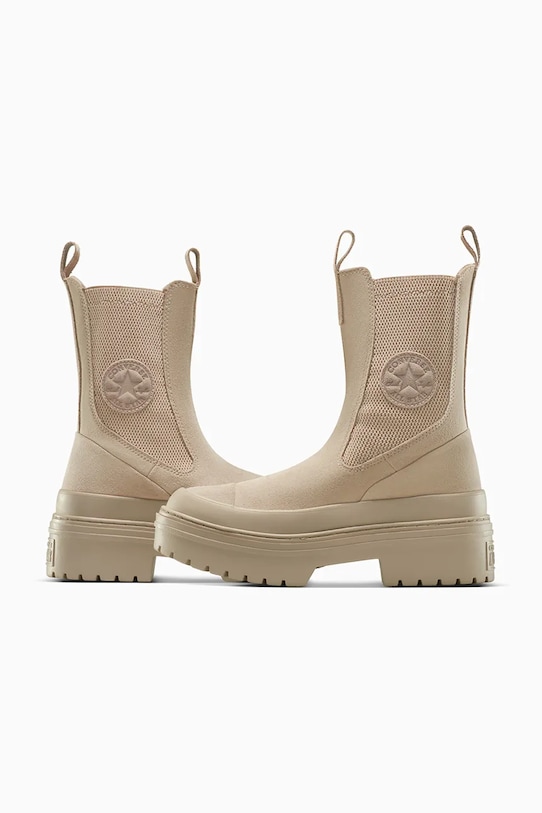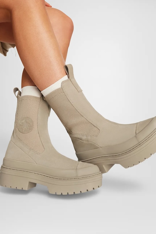 Эти ботинки челси из коллекции Converse изготовлены из замши. Они оснащены прочной и износостойкой резиновой подошвой. - Мягкая стелька из пеноматериала Ortholite отводит влагу и предотвращает потливость ног. Она обладает антибактериальными и противогрибковыми свойствами, защищает от запахов и обеспечивает отличную амортизацию. - Задняя петля и эластичные вставки позволяют легко надевать и снимать. - Уютный салон. - Платформенная модель.