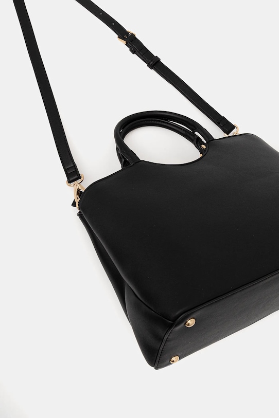 Сумка среднего размера из коллекции Valentino Bags. Модель на молнии, выполнена из экокожи. - Имеет три отделения: одно на молнии, два на магнитной застежке. - Имеет два внутренних кармана: один прорезной, другой на молнии. - Модель оснащена металлическими ножками, которые защищают дно сумки. - Имеет ручки и съемный регулируемый ремень. - Входящий в комплект тканевый чехол защищает изделие от пыли. - Модель на подкладке. - Не подходит для формата А4. - Глубина: 14 см. - Высота: 22,5 см. - Ширина у основания: 32 см. - Длина ручки: 29 см. - Минимальная длина ремня: 115 см. - Максимальная длина ремня: 127 см.