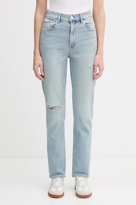 Эти джинсы mom с высокой талией из коллекции Calvin Klein Jeans изготовлены из стираного денима и отличаются эластичной облегающей тканью. - Джинсы, слегка облегающие на бедрах. - Крой с зауженными брючинами, не стесняющими движений. - Модель с высокой талией, застежкой на пуговицы и молнию. - Три накладных кармана спереди. - Два накладных кармана на ягодицах. - Материал с декоративными потертостями. - Ширина талии: 35 см. - Ширина бедер: 47,5 см. - Высота талии: 30,5 см. - Ширина штанины внизу: 16,5 см. - Ширина штанины: 26,5 см. - Длина внешней части штанины: 106,5 см. - Размеры указаны для размера: 27/32.