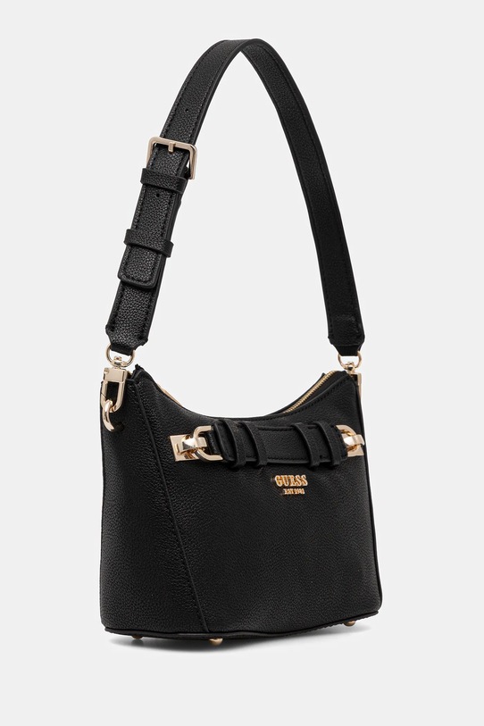 Небольшая сумочка из коллекции Guess. Модель на молнии, выполнена из экокожи. - Застежка-молния. - Имеет регулируемую ручку. - Не подходит для формата А4. - Модель оснащена металлическими ножками, которые защищают дно сумки. - Внутренний карман на молнии. - Количество слотов для карт: 3. - Количество внешних карманов на молнии: 1. - Входящий в комплект тканевый чехол защищает изделие от пыли. - Минимальная длина ручки: 61 см. - Максимальная длина ручки: 55 см. - Глубина: 9 см. - Высота: 16 см. - Ширина у основания: 21 см.