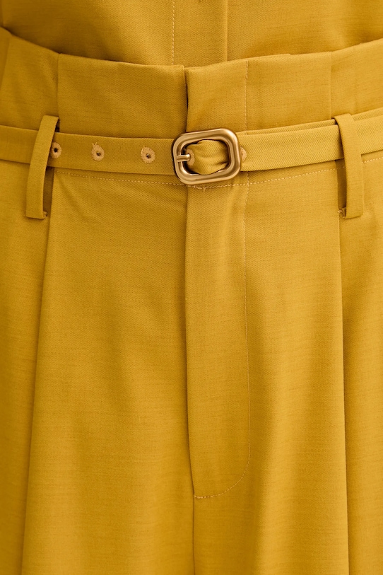 Эти брюки из коллекции ISABELLE BLANCHE выполнены из гладкой ткани. Полиэстер обеспечивает повышенную устойчивость к сминанию. - Простой дизайн, не стесняющий движений. - Модель с высокой талией, застежкой на молнию и крючок. - Накладные карманы. - Декоративные закладки. - Пояс на талии. - Тонкая, неэластичная ткань. - Ширина талии: 36 см. - Ширина бедер: 60 см. - Высота талии: 38 см. - Ширина штанины внизу: 36 см. - Ширина штанины: 37 см. - Длина по внутреннему шву: 75 см. - Размеры указаны для размера: S.