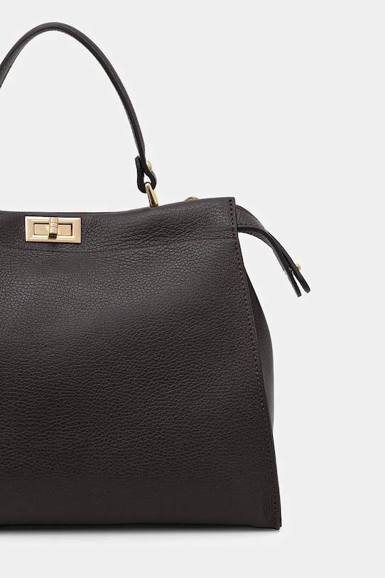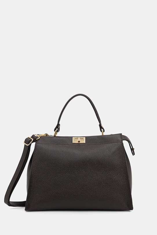 Сумка среднего размера из коллекции Answear.Lab. Модель на молнии, выполнена из натуральной кожи. В комплект входит тканевый пыльник для защиты сумки от пыли. - Двухкамерная модель. - Внутренний карман на молнии. - Модель без подкладки. - Имеет ручку и съемный регулируемый ремень. - Не подходит для формата А4. - Глубина: 13 см. - Высота: 24 см. - Ширина у основания: 33 см. - Длина ручки: 32 см.
