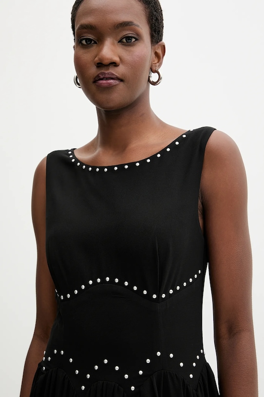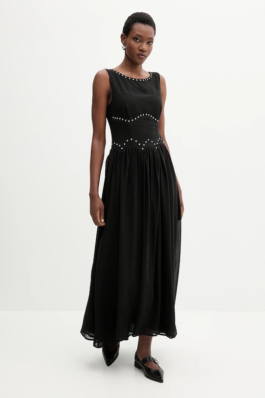 Это платье из коллекции Never Fully Dressed выполнено из тонкой, неэластичной ткани. Полиэстер обеспечивает лучшую устойчивость к сминанию. - Изделие содержит переработанные волокнистые материалы. - Расклешенный крой. - Вырез горловины «лодочка». - Декоративные детали. - Удобная боковая застежка-молния и крючок позволяют легко надевать и снимать. - Длина: 140 см. - Ширина под мышками: 42 см. - Ширина талии: 34 см. - Размеры указаны для размера: S.