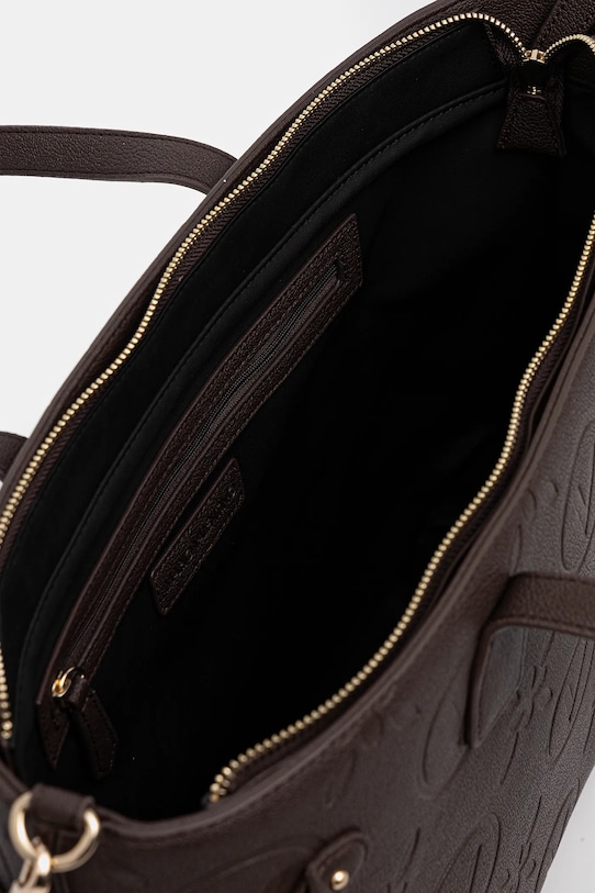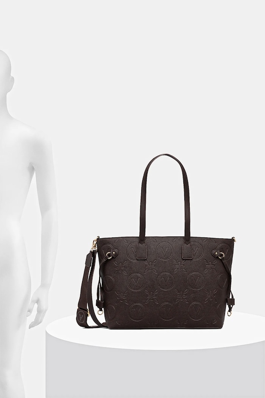 Большая сумка из коллекции Valentino Bags. Модель на молнии, выполнена из экокожи. - Застежка-молния. - Имеет ручки и два съемных регулируемых ремня. - Модель на подкладке. - Вмещает формат А4. - Входящий в комплект тканевый чехол защищает изделие от пыли. - Три внутренних кармана: один на молнии, два накладных. - Длина ручки: 66 см. - Минимальная длина ремня: 100 / 114 см. - Максимальная длина ремня: 160/127 см. - Глубина: 10 см. - Высота: 27 см. - Ширина у основания: 35 см.