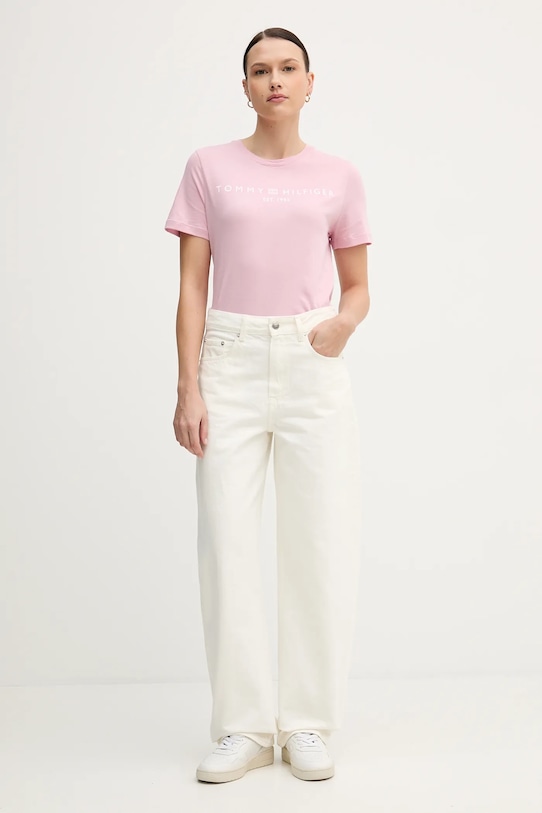 Джинсы Tommy Hilfiger с высокой талией. Изготовлены из гладкого денима. - Эта модель содержит регенерированные хлопковые волокна. Новые волокна и пряжа производятся из старых текстильных отходов и используются для производства новой одежды. - Модель с высокой талией, застежкой на пуговицы и молнию. - Три накладных кармана спереди. - Два накладных кармана на ягодицах. - Ширина талии: 38 см. - Ширина бедер: 49 см. - Высота талии: 30 см. - Ширина штанины внизу: 22 см. - Ширина штанины: 31 см. - Длина по внутреннему шву: 76 см. - Размеры указаны для размера: 27/32.