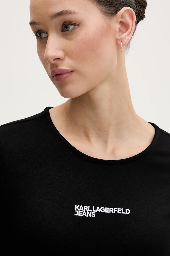 Платье из коллекции Karl Lagerfeld Jeans. Приталенная модель выполнена из тонкой эластичной ткани. Полиамид обеспечивает повышенную прочность. - Модель мини-длины. - Классический круглый вырез. - Длинные рукава. - Модель с декоративной шнуровкой. - Вышитый логотип. - Длина рукава: 75 см. - Длина: 92 см. - Ширина под мышками: 39 см. - Размеры указаны для размера: S.