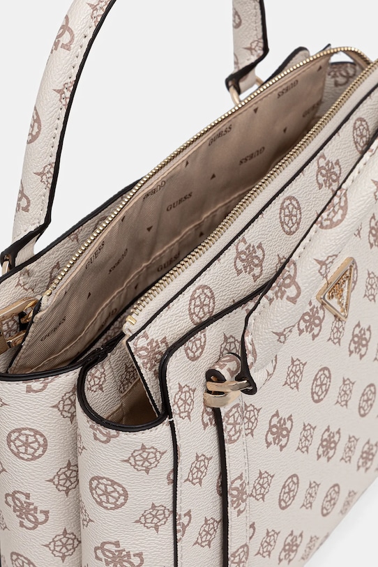 Сумка среднего размера из коллекции Guess. Модель на молнии, выполнена из экокожи. - Входящий в комплект тканевый чехол защищает изделие от пыли. - Имеет ручки и съемный регулируемый ремень. - Внутренний карман на молнии. - Два внешних кармана с магнитной застежкой. - Два внутренних накладных кармана. - Модель оснащена металлическими ножками, которые защищают дно сумки. - Застежка-молния. - Не подходит для формата А4. - Минимальная длина ремня: 100 см. - Максимальная длина ремня: 120 см. - Длина ручки: 37 см. - Глубина: 10 см. - Высота: 24 см. - Ширина у основания: 29 см.