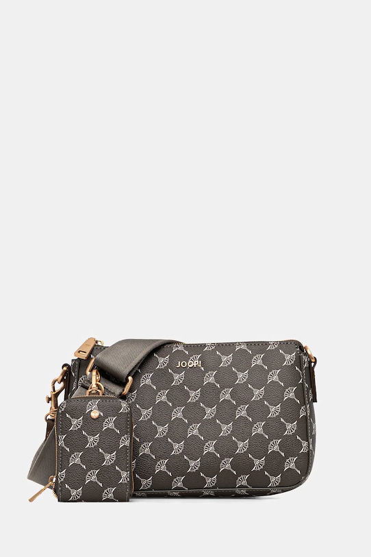 Небольшая сумочка из коллекции Joop!. Модель на молнии, выполнена из экокожи. В комплект входит небольшой мешочек. - Застежка-молния. - Дополнительные карманы внутри. - Сумка для ношения через плечо. - Присоединяемый длинный ремешок с регулировкой. - Не подходит для формата А4. - Модель на подкладке. - Глубина: 6 см. - Высота: 15 см. - Ширина у основания: 24,5 см. - Количество внутренних карманов на молнии: 1. - Количество внутренних накладных карманов: 1. - Минимальная длина ремешка: 85 см. - Максимальная длина ремня: 129 см.