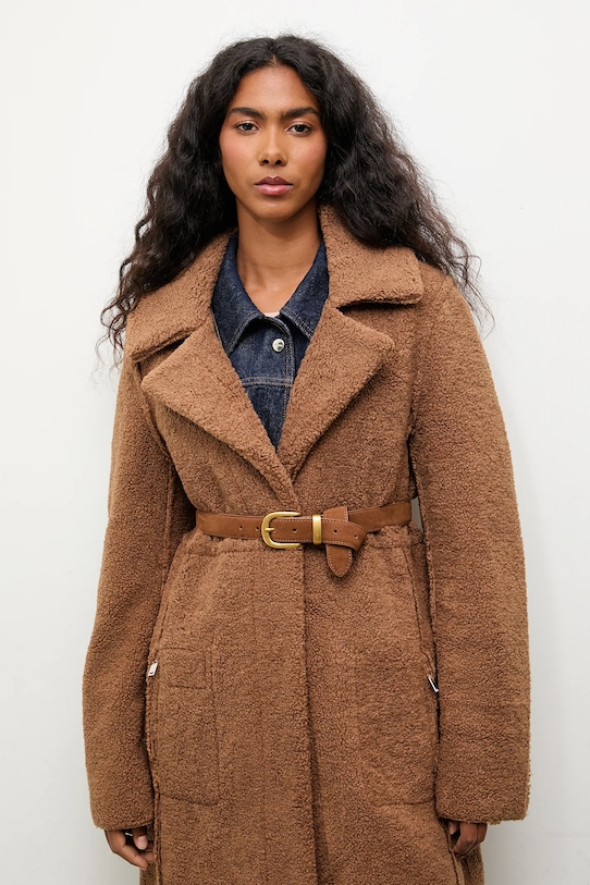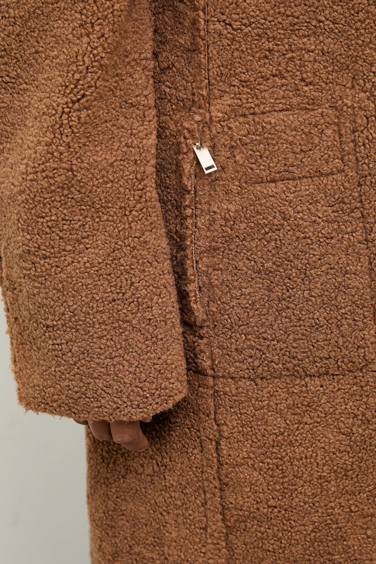Пальто из коллекции Answear.Lab. Это пальто с лёгким утеплителем выполнено из искусственной замши и искусственного меха. Мягкий, приятный на ощупь материал. - Простой дизайн, не стесняющий движений. - Длинный рукав. - Классические лацканы. - Удобная застежка-кнопка позволяет легко надевать и снимать. - Два накладных кармана спереди. - Длина рукава: 65 см. - Длина: 112 см. - Ширина под мышками: 54 см. - Ширина плеч: 50 см. - Размеры указаны для размера: S.