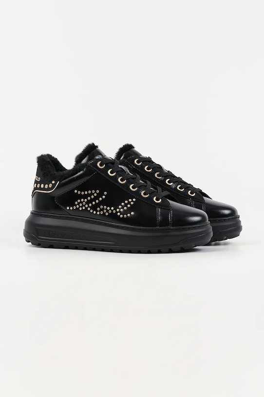 Кроссовки из коллекции Karl Lagerfeld. Верх из натуральной кожи не имеет пор и легко чистится влажной тканью. - Круглый, слегка утолщенный носок. - Усиленный задник обеспечивает отличную поддержку лодыжки и пятки. - Плоские шнурки устраняют давление на подъем стопы, обеспечивая хорошую посадку и комфорт. - Слегка гибкая пенная подошва обеспечивает более мягкое ощущение и дополнительную амортизацию. - Уютный салон. - Платформенная модель.