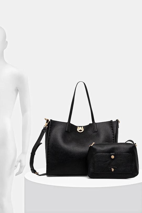 Большая сумка из коллекции U.S. Polo Assn.. Эта модель на молнии выполнена из экокожи. В комплект входит сумка меньшего размера. - Поворотная застежка. - Имеет ручки и съемный регулируемый ремень. - Вмещает формат А4. - Модель без подкладки. - Минимальная длина ремешка: 102 см. - Максимальная длина ремня: 116 см. - Длина ручки: 58 см. - Глубина: 13 см. - Высота: 32 см. - Ширина у основания: 40 см.