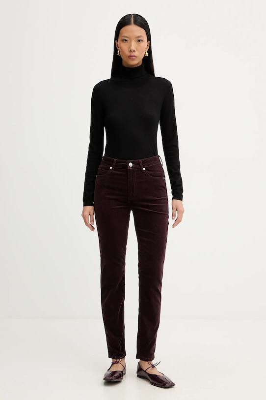 - Модель с высокой талией, застежкой на пуговицы и молнию.