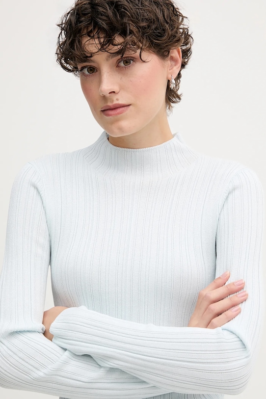 Этот свитер из коллекции Calvin Klein Jeans выполнен из гладкого трикотажа. Высокоэластичный материал обеспечивает полную свободу движений. - Ребристая структура материала делает его чрезвычайно гибким и идеально прилегает к телу. - Модель с воротником-стойкой. - Тонкий, эластичный трикотаж. - Длина рукава: 62 см. - Длина: 61 см. - Ширина под мышками: 39 см. - Размеры указаны для размера: S.