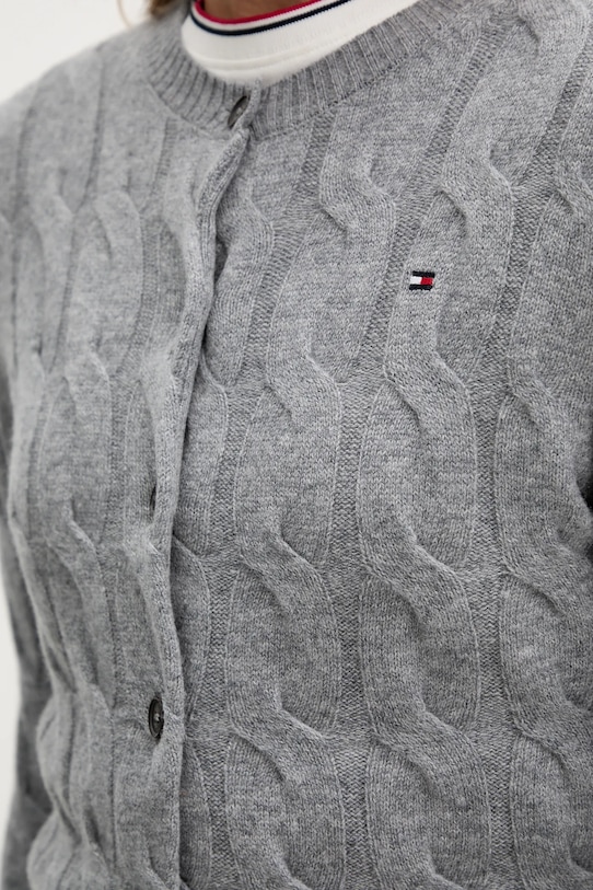 Этот кардиган из коллекции Tommy Hilfiger выполнен из тонкого, эластичного трикотажа. Он мягкий и приятный на ощупь. - Модель частично изготовлена из переработанной шерсти. - Простой дизайн, не стесняющий движений. - Длинный рукав. - Удобная застежка на кнопки позволяет легко надевать и снимать. - Рукава и нижний край отделаны удобными эластичными манжетами. - Длина рукава: 66 см. - Длина: 60 см. - Ширина под мышками: 47 см. - Размеры указаны для размера: S.