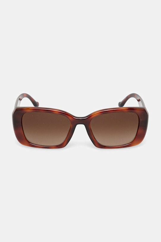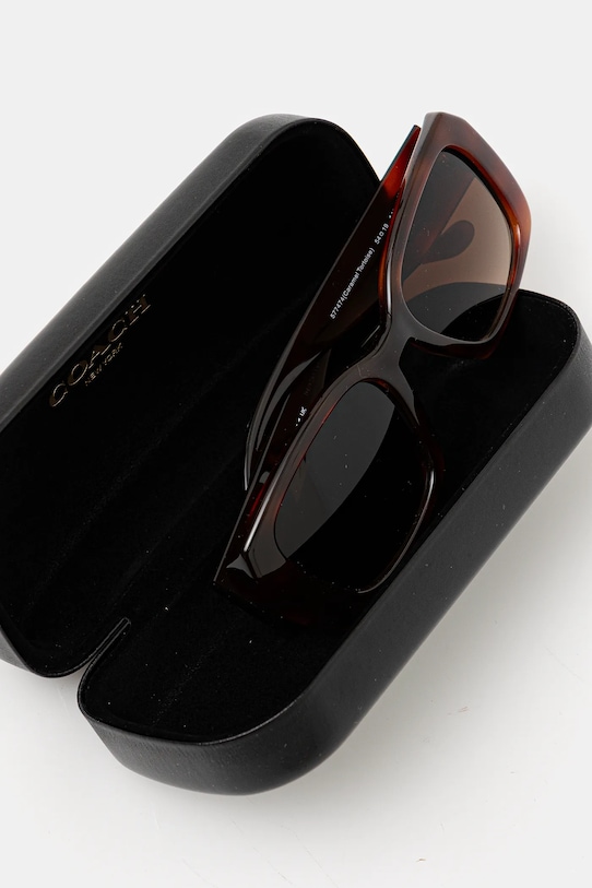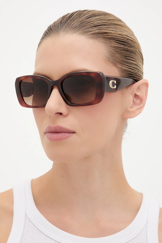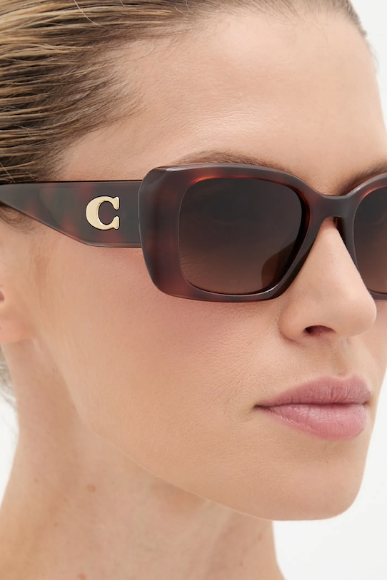 Солнцезащитные очки из коллекции Coach. Модель с градиентными линзами и пластиковой оправой. Защита от ультрафиолета UV 400. - Фильтр UV 400 обеспечивает максимальную защиту от солнечного излучения. - Категория 3 (пропускает 8–18% света) - самая распространённая и универсальная категория затемняющих фильтров. Очки категории 3 идеально подходят для повседневного использования в солнечные дни и для отдыха в жарких странах. - В комплект модели входят чехол и салфетка для протирки очков. - Форма оправы: геометрическая. - Ширина рамы: 150 мм. - Ширина линзы: 55 мм.