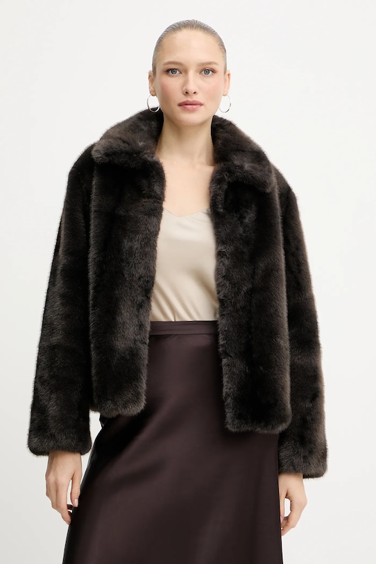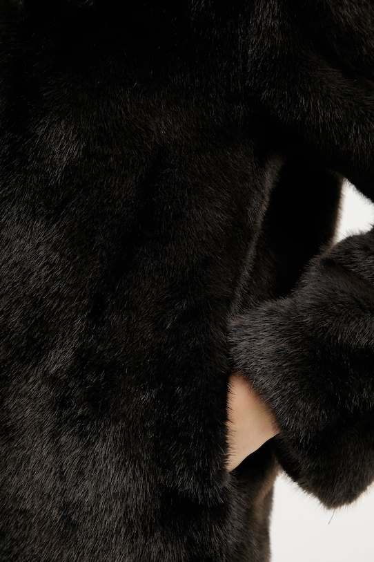Короткое пальто из коллекции Silvian Heach. Модель без подкладки выполнена из искусственного меха. Материал мягкий и приятный на ощупь. - Простой дизайн, не стесняющий движений. - Удобная застежка на крючки позволяет легко надевать и снимать. - Модель с мягким воротником. - Два боковых накладных кармана. - Неутепленная модель с подкладкой. - Длина рукава: 60 см. - Длина: 62 см. - Ширина под мышками: 55 см. - Ширина плеч: 47 см. - Размеры указаны для размера: 36.