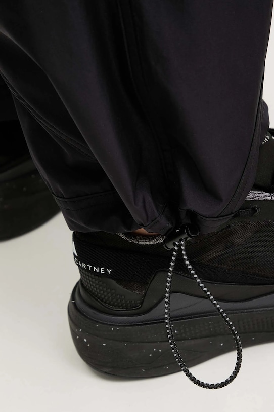 Спортивные брюки из коллекции adidas by Stella McCartney. Изготовлены из быстросохнущего материала. - Модель с высокой талией, застежкой на молнию и кнопки. - Модель с эластичной вставкой. - Два боковых накладных кармана. - Ножки застегиваются на молнию. - Карманы на молнии сзади. - Ножки отделаны завязками и стопорами. - Светоотражающие элементы повышают видимость и безопасность в темное время суток. - Тонкая, неэластичная ткань. - Ширина талии: 40 см. - Ширина бедер: 47 см. - Высота талии: 33 см. - Ширина штанины: 34 см. - Ширина штанины внизу: 26 см. - Длина по внутреннему шву: 72 см. - Размеры указаны для размера: S.