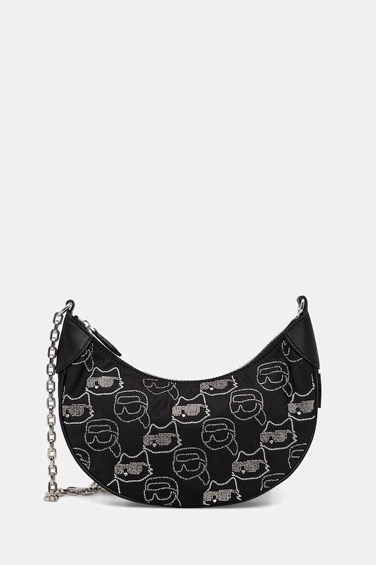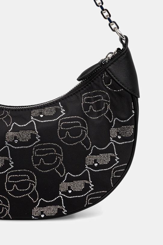 Маленькая сумочка из коллекции Karl Lagerfeld. Изготовлена из текстильного материала, с застёжкой. - Изделие содержит переработанные волокнистые материалы. - Не подходит для формата А4. - Основное отделение на молнии. - Внутренний накладной карман. - Модель с декоративной аппликацией. - Длинная ручка. - Глубина: 10 см. - Высота: 14 см. - Ширина в самом широком месте: 26 см. - Длина ручки: 46 см.