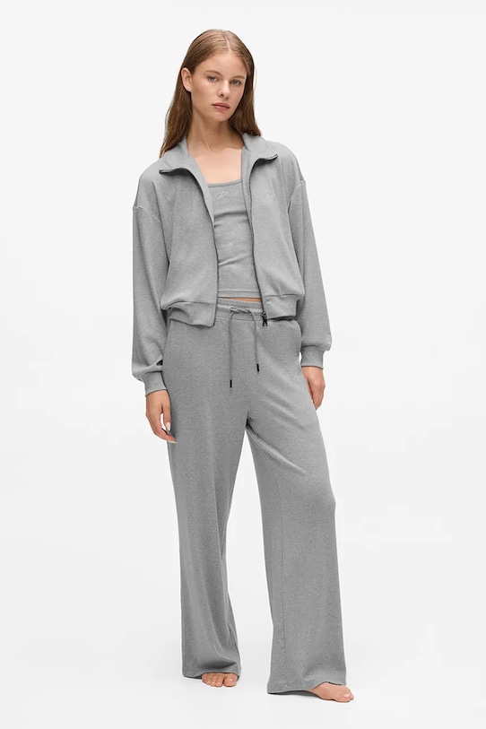Эти спортивные брюки из коллекции Karl Lagerfeld сшиты из тонкой эластичной ткани. Они мягкие и приятные на ощупь. - Брюки свободные в области бедер и ягодиц. - Высокая талия обеспечивает комфорт во время занятий спортом и позволяет визуально стройнить фигуру. - Эластичный пояс и дополнительная регулировка ширины с помощью шнурков для предотвращения сползания во время движения. - Прямые, широкие штанины. - Два боковых накладных кармана. - Логотип бренда вышит спереди.