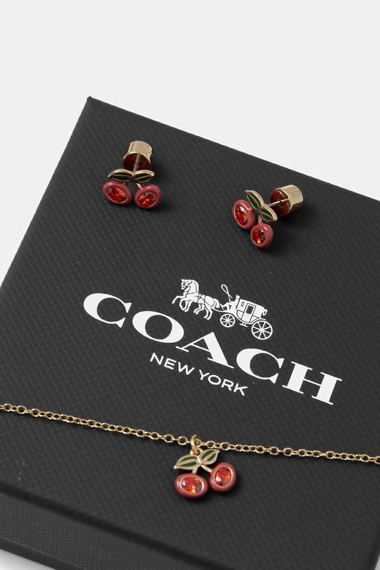 Колье и серьги из коллекции Coach. Дизайн с декоративными элементами, выполненными из металла.