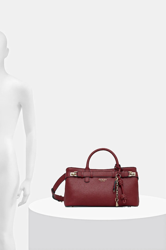Небольшая сумочка из коллекции Guess. Модель на молнии, выполнена из экокожи. - Имеет три отделения: одно на молнии, два на магнитной застежке. - Внутренний карман на молнии. - Имеет внутренние отделения для карт. - Карман на молнии на задней стороне позволяет безопасно хранить телефон или другие мелкие предметы. - Модель на подкладке. - Не подходит для формата А4. - Имеет ручки и съемный регулируемый ремень. - Модель оснащена металлическими ножками, которые защищают дно сумки. - В комплект модели входит брелок. - Входящий в комплект тканевый чехол защищает изделие от пыли. - Количество слотов для карт: 6. - Глубина: 10 см. - Высота: 18 см. - Ширина у основания: 33 см. - Длина ручки: 28 см. - Минимальная длина ремня: 114 см. - Максимальная длина ремня: 132 см.