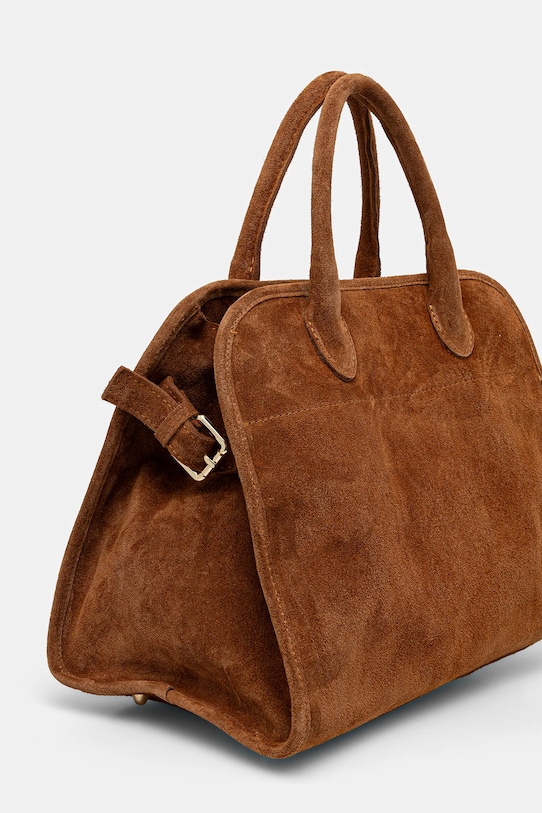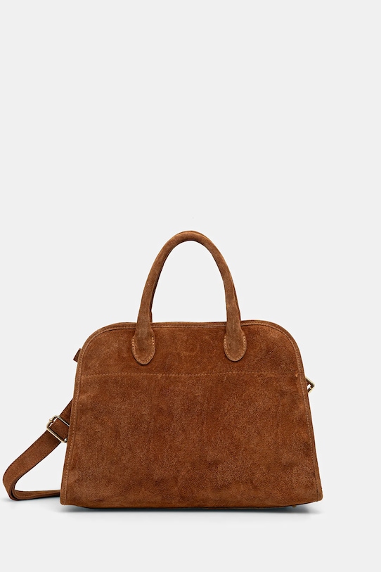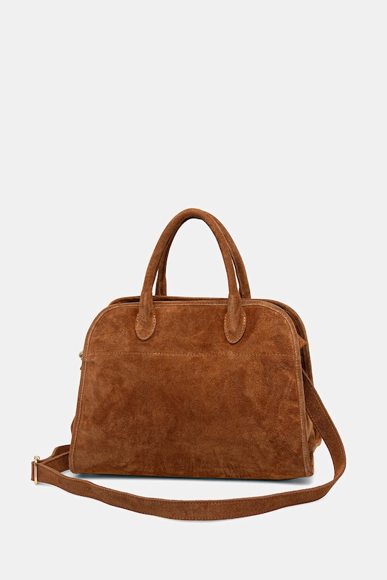 Сумка из коллекции Answear.Lab. Модель на молнии, выполнена из замши. - Входящий в комплект тканевый чехол защищает изделие от пыли. - Модель оснащена металлическими ножками, которые защищают дно сумки. - Имеет ручки и съемный регулируемый ремень. - Внутренний карман на молнии. - Два внутренних накладных кармана. - Модель на подкладке. - Вмещает формат А4. - Минимальная длина ремешка: 55 см. - Максимальная длина ремня: 112 см. - Длина ручки: 35 см. - Глубина: 16 см. - Высота: 25 см. - Ширина у основания: 38 см.